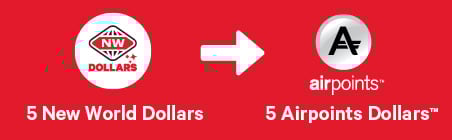 • New World Dollars will only convert to Airpoints Dollars in increments of 5.