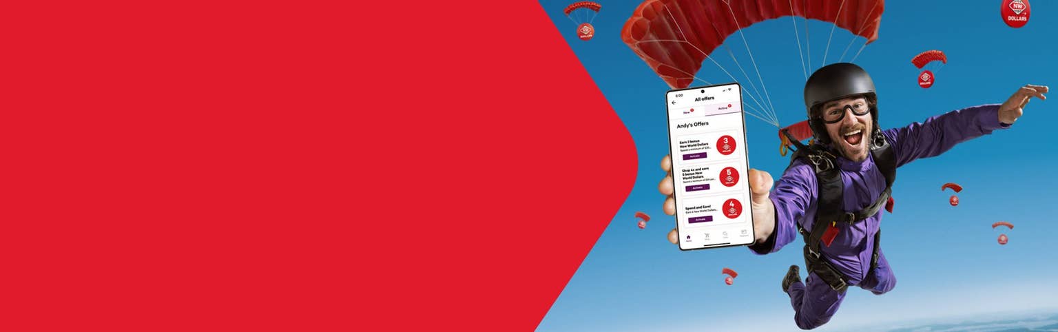 From time to time you’ll see offers in your New World app. Simply choose the ones you want to activate in your app then shop, either in-store or online. Meet the requirements of the offer, and you’ll be rewarded with bonus New World Dollars on your Clubcard.