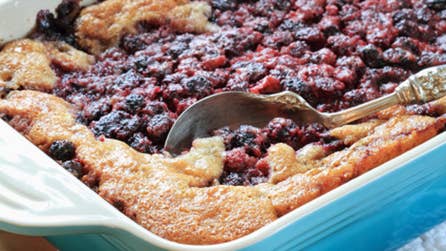 This tasty Swedish berry cake can be enjoyed warm or cold! Using just caster sugar, butter, an egg, flour and your choice of frozen berries, this is one of the best easy dessert meals you'll ever find.