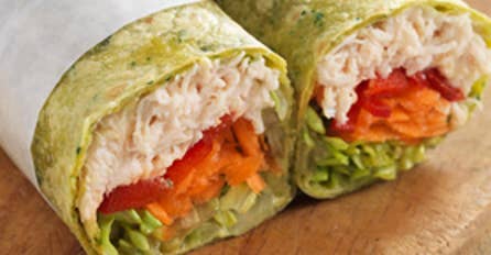 This tasty, easy and healthy chicken salad wrap is a great café style lunch. Technically, it isn't quite a '5 ingredient recipe' since it has six ingredients - however, the ingredients can be switched around to create your own wrap of choice. Switch the chicken for leftover steak or ham and select your choice of salads. Tomatoes, spinach, green onions, cream cheese, and even cooked black beans, sour cream and cheese all make excellent fillings. You can even chuck this in the grill or sandwich press to create a toasted wrap - great to serve as a dinner meal too!
