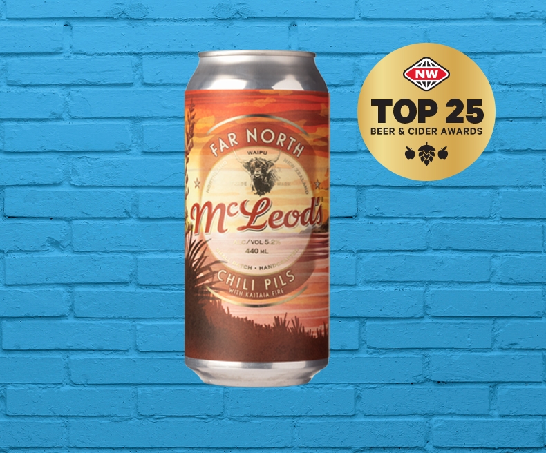 | Judges’ comments:Northland brewery McLeod’s with its iconic Pizza Barn bar and restaurant are regulars in this event but for the first time one of their longest-standing brews has forced its way into the Top-25. This chilli pilsner gets its heat courtesy of fellow Northlanders Kaitaia Fire, who supply the chillies. It delivers a hint of heat up the nostrils on the aroma. In the flavour department. Warming finish but not overpowering spice. | |