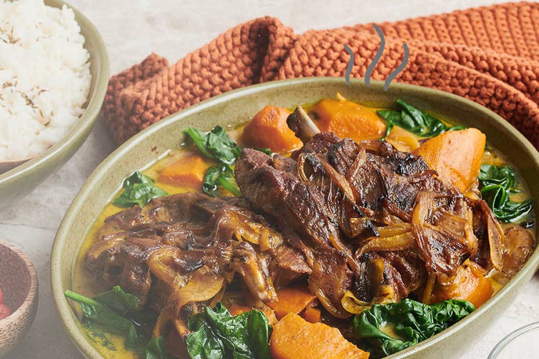 The best slow cooker lamb cuts are bone-in, because the bone imparts lots of flavour and prevents the meat from drying out easily. That said, for something like a stew or a curry, boneless lamb or shoulder pieces can go down a treat. You can even buy a butterflied lamb leg and dice it yourself.