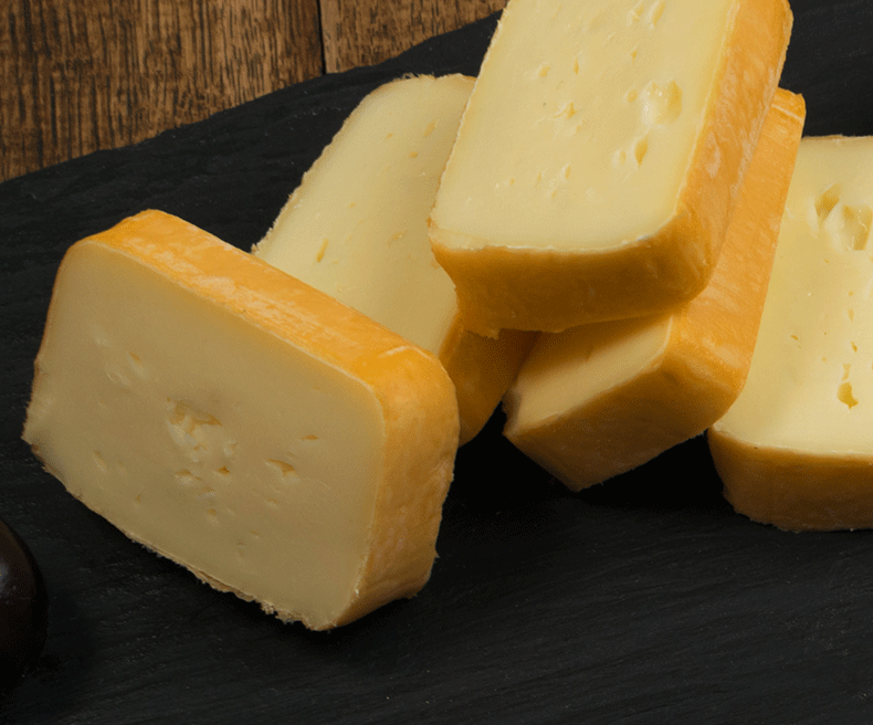 Because of this, semi-soft cheeses will still have some of the creamy, milky flavours of soft-ripened cheeses. However, instead of being more runny in the middle, semi-soft cheese is usually the same consistency all the way through, with the added aging time developing more of the cheese’s flavour.