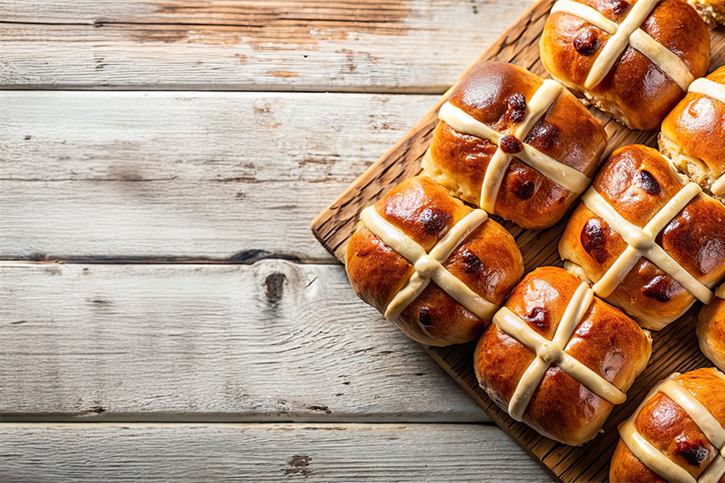 Celebrate Easter with these classic hot cross buns. Cinnamon spiced with pops of raisins, finished with a cross on the top, make these fluffy buns special and oh-so-delicious. The heavenly aroma will permeate your home and have everyone gathering round for a taste.