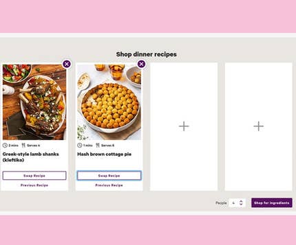 Add up to four recipes, swapping recipes for ones you want.