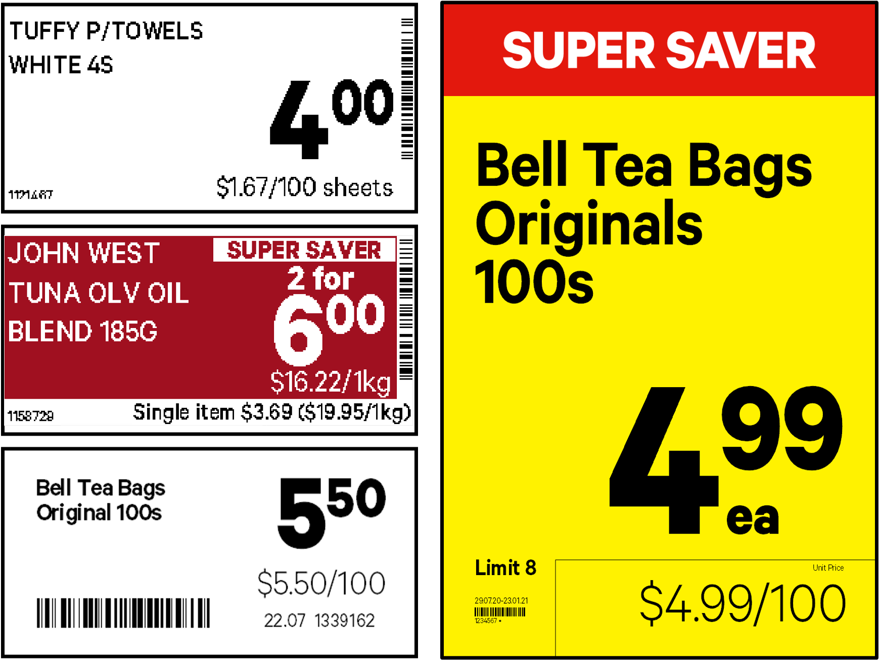 In the example above you can see that the advertised purchase price for Bell Tea Bags Original is $5.50, the unit of measure is per 100 items, so the Unit Price is displayed as $5.50 per 100 items.